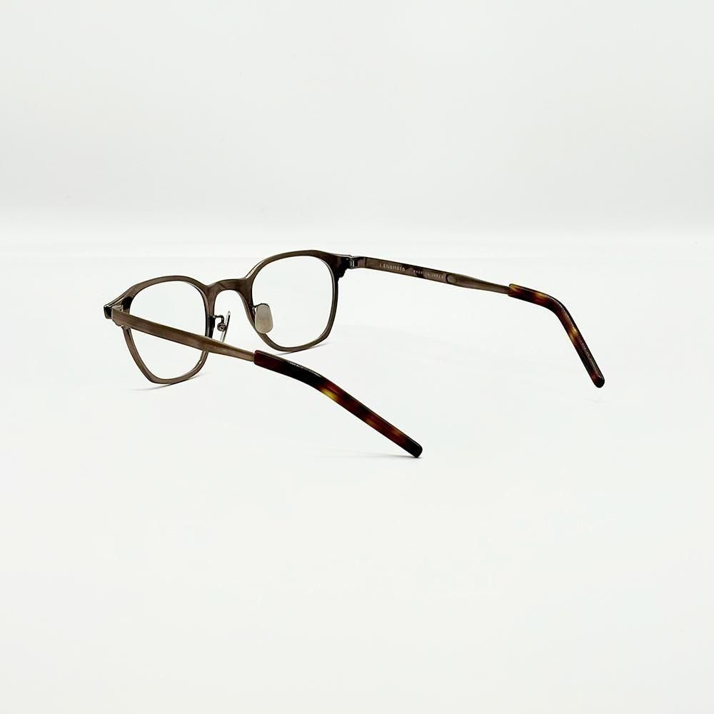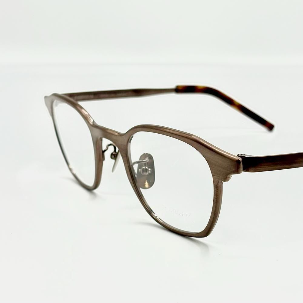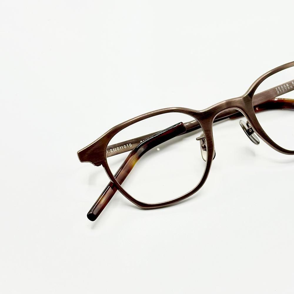 板材のチタンにプレスをかけ、エッジを落としてころんと丸く仕上げられたフレームのアウトラインとI.ENOMOTOらしいヘアライン仕上げのインダストリアルな質感のギャップがたまらない。
