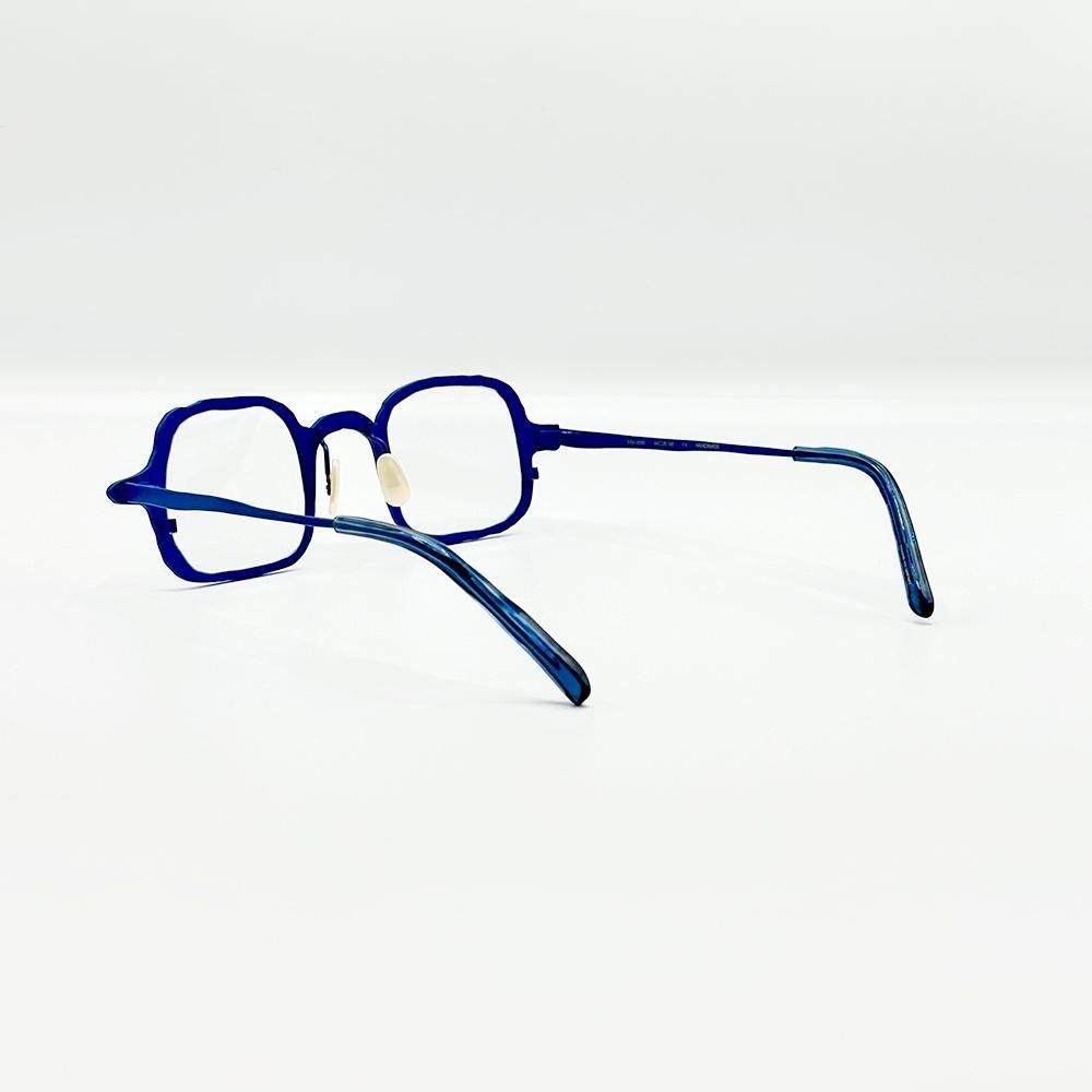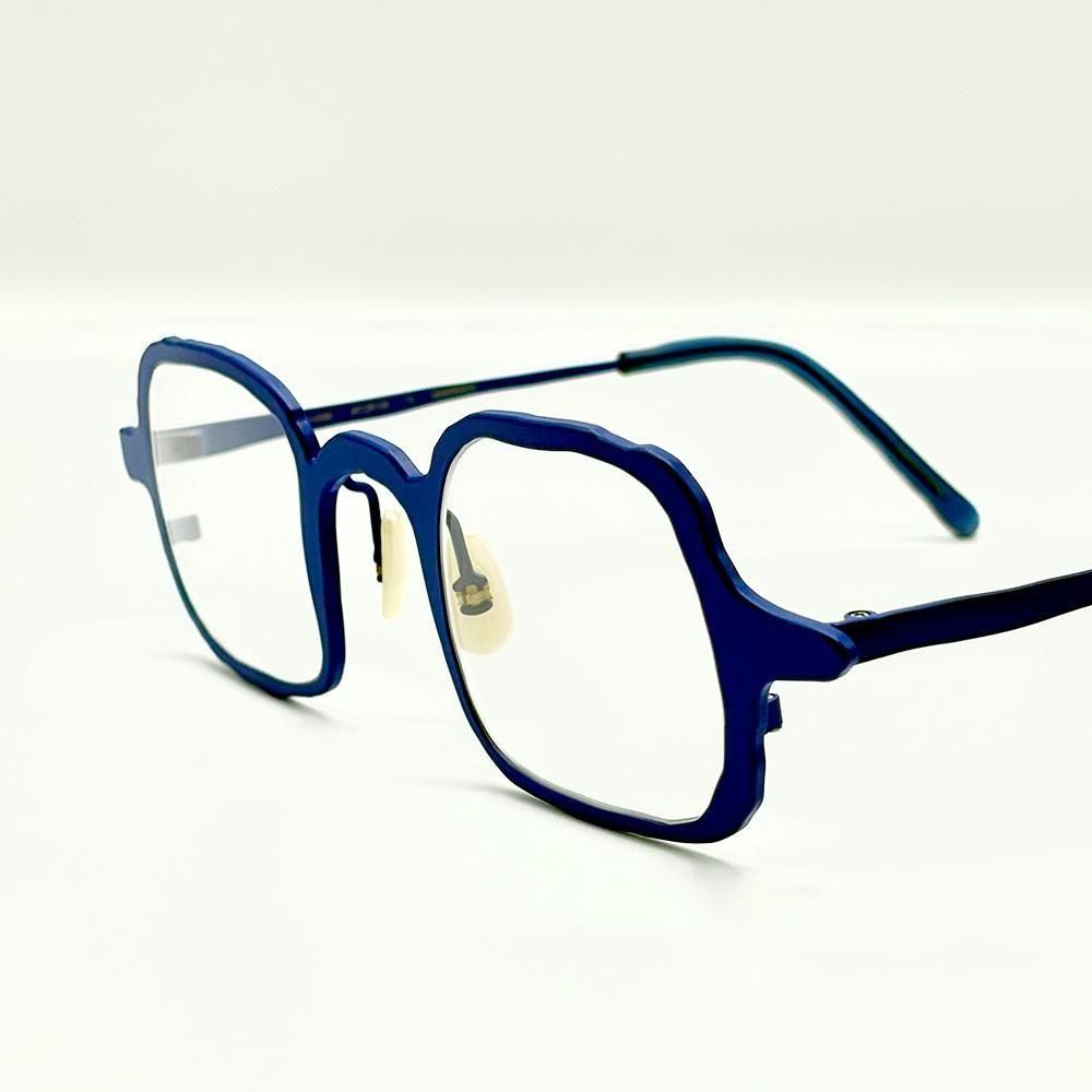 手書きのようないびつでラフなアウトライン、全体にサイズダウンし、レンズシェイプをよりアシンメトリーにすることで、メタルフレームながらしっかりと存在感のあるアイテムに仕上がっている。