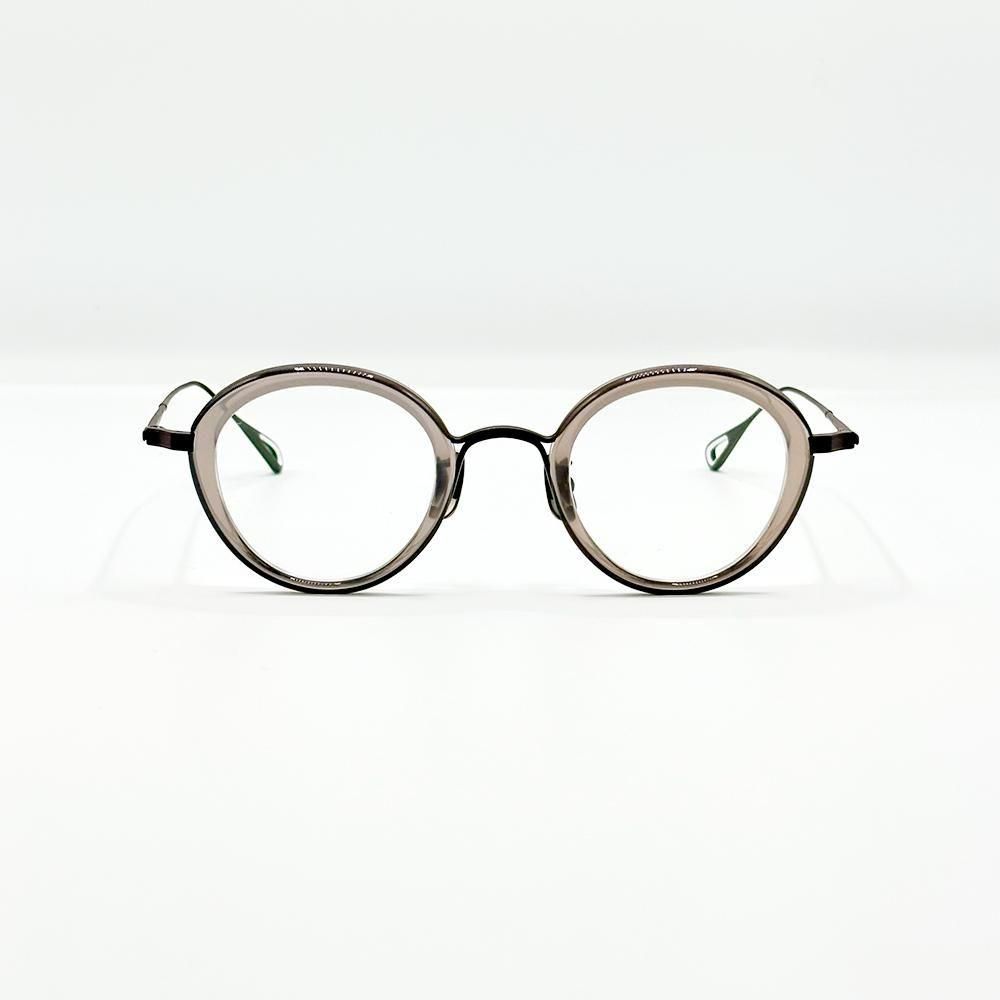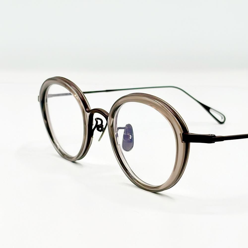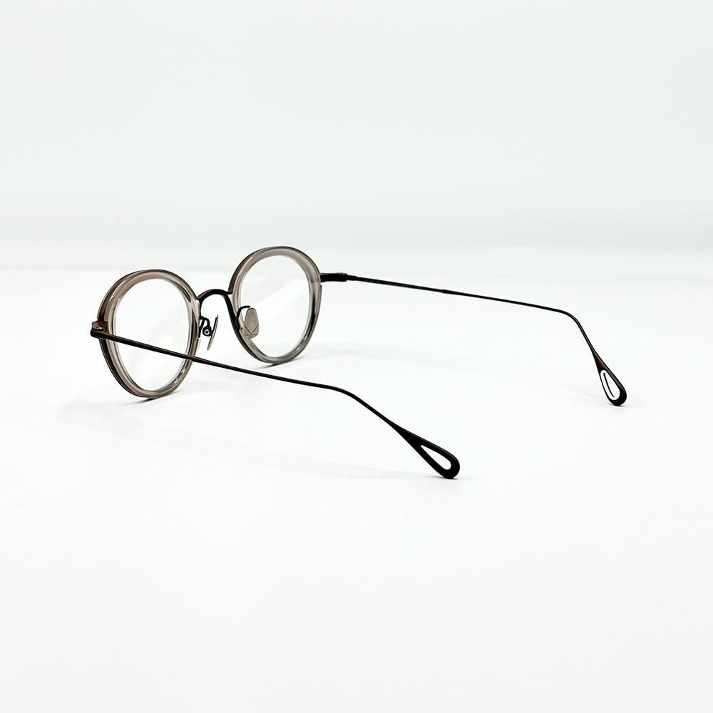 肉厚なアセテートのインナーリムを搭載した今作は、透明感、甲丸感、そしてツヤが、より目元を印象付ける新鮮なスタイルとなっている。