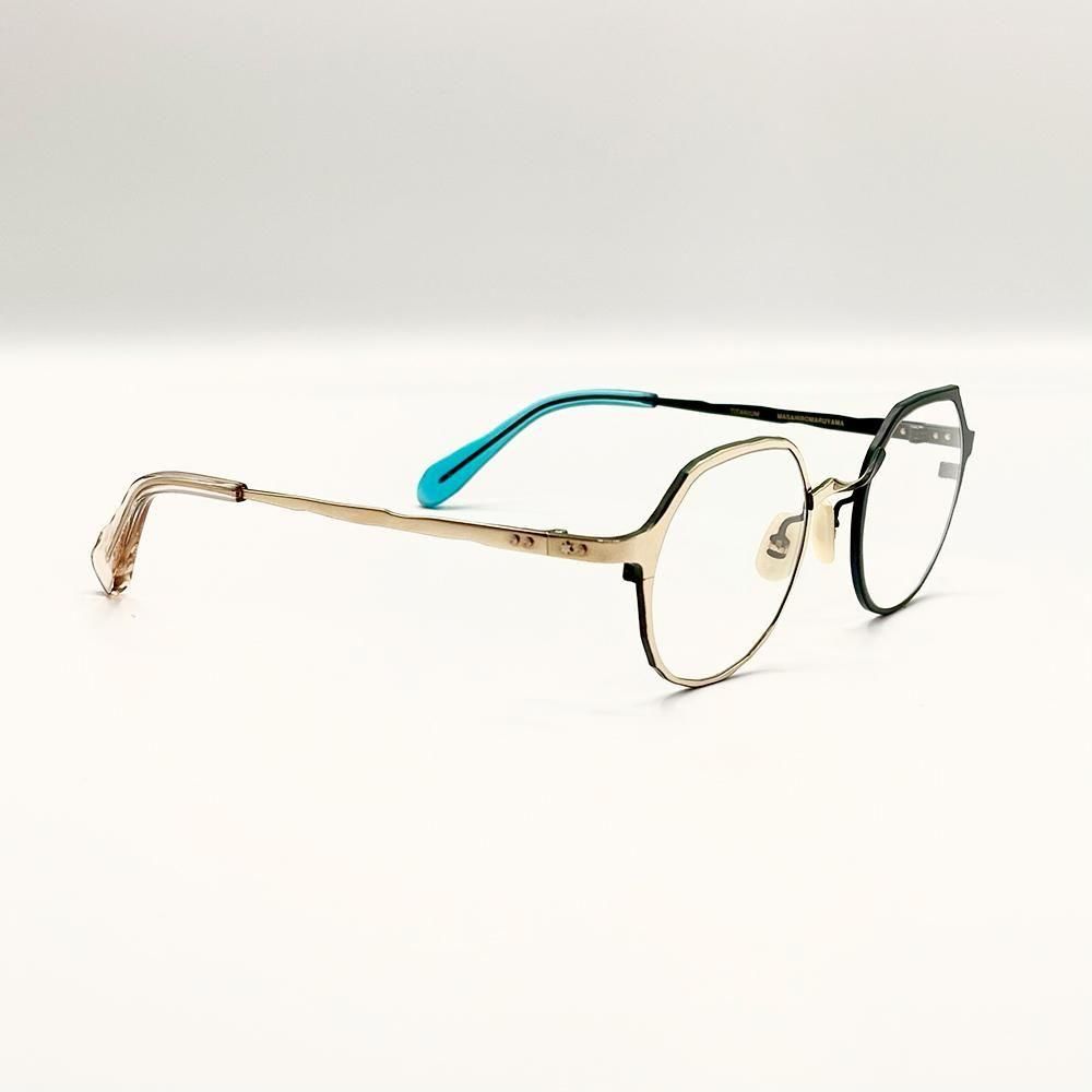 MASAHIROMARUYAMAらしさ全開のハンドライティングのいびつなフレームシェイプに、左右非対称・強く動きを感じるテーマ性のグッドバランス。