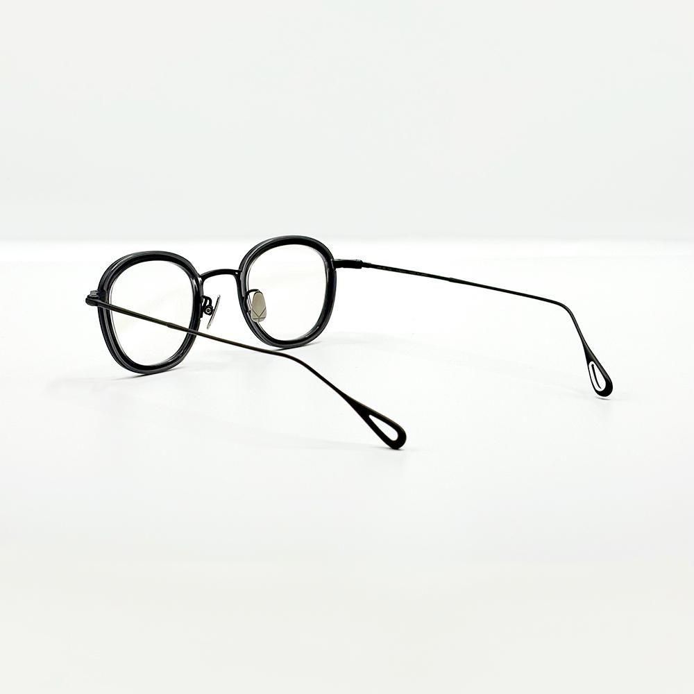肉厚なアセテートのインナーリムを搭載した今作は、透明感、甲丸感、そしてツヤが、より目元を印象付ける新鮮なスタイルとなっている。