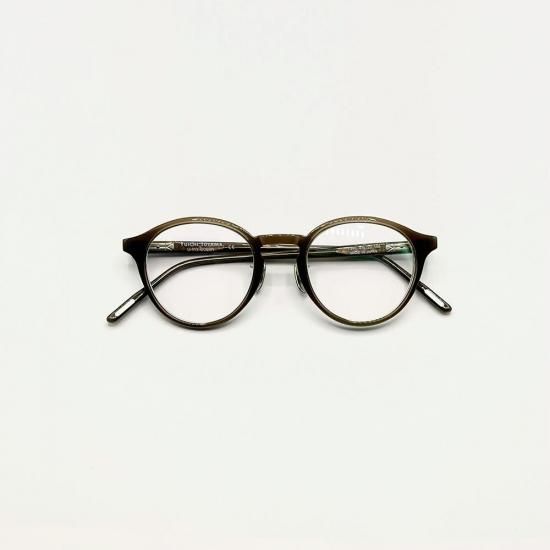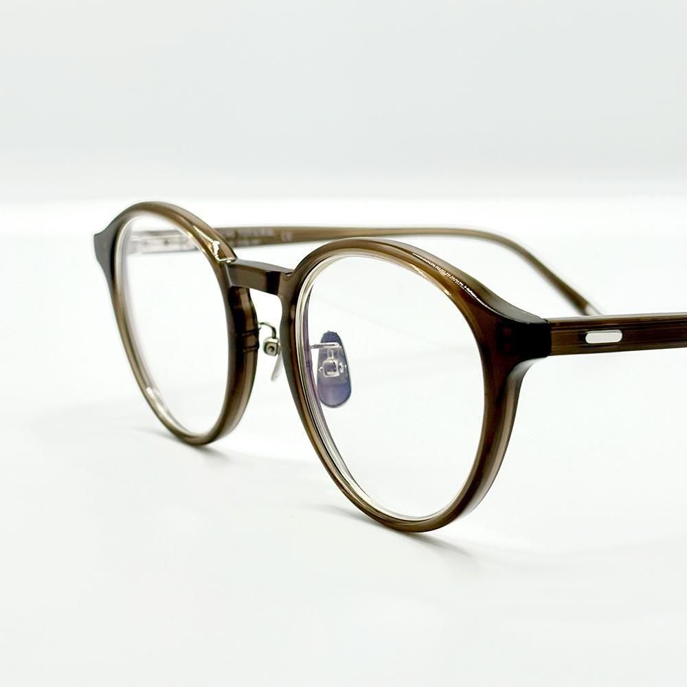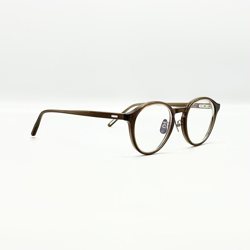ゆったりめのパントゥシェイプながら、リムが太すぎずすっきり、内側にチタンリムを這わせることで上品で洗練されたムードが漂う。
