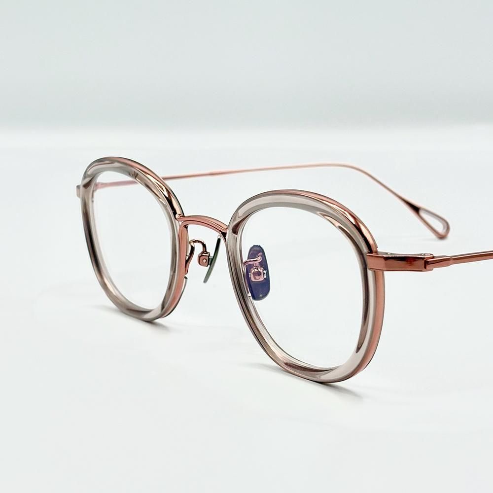 肉厚なアセテートのインナーリムを搭載した今作は、透明感、甲丸感、そしてツヤが、より目元を印象付ける新鮮なスタイルとなっている。
