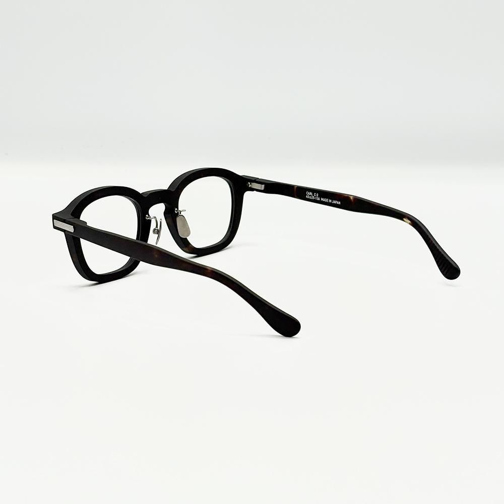 程良くゆったりとしたサイズ感が嬉しいCARL。定番中の定番とも言えるウェリントンシェイプ、テンプル位置を少し下げめにすることで、気さくな雰囲気に仕上がっている。