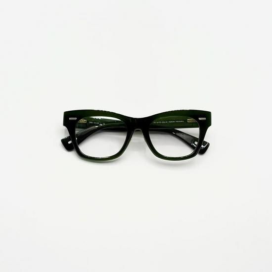 エッジの立った切りっぱなし/磨きなしのソリッドな加工は、つり上がったブローラインを一層引き立て、シャープな目元を作ってくれる。ヴィンテージ感がありながら、それらにはない都会的な趣、また存在感のあるワイドなシルエットで、今っぽく、ユウイチトヤマらしいバランス。