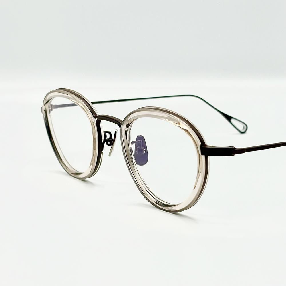 肉厚なアセテートのインナーリムを搭載した今作は、透明感、甲丸感、そしてツヤが、より目元を印象付ける新鮮なスタイルとなっている。