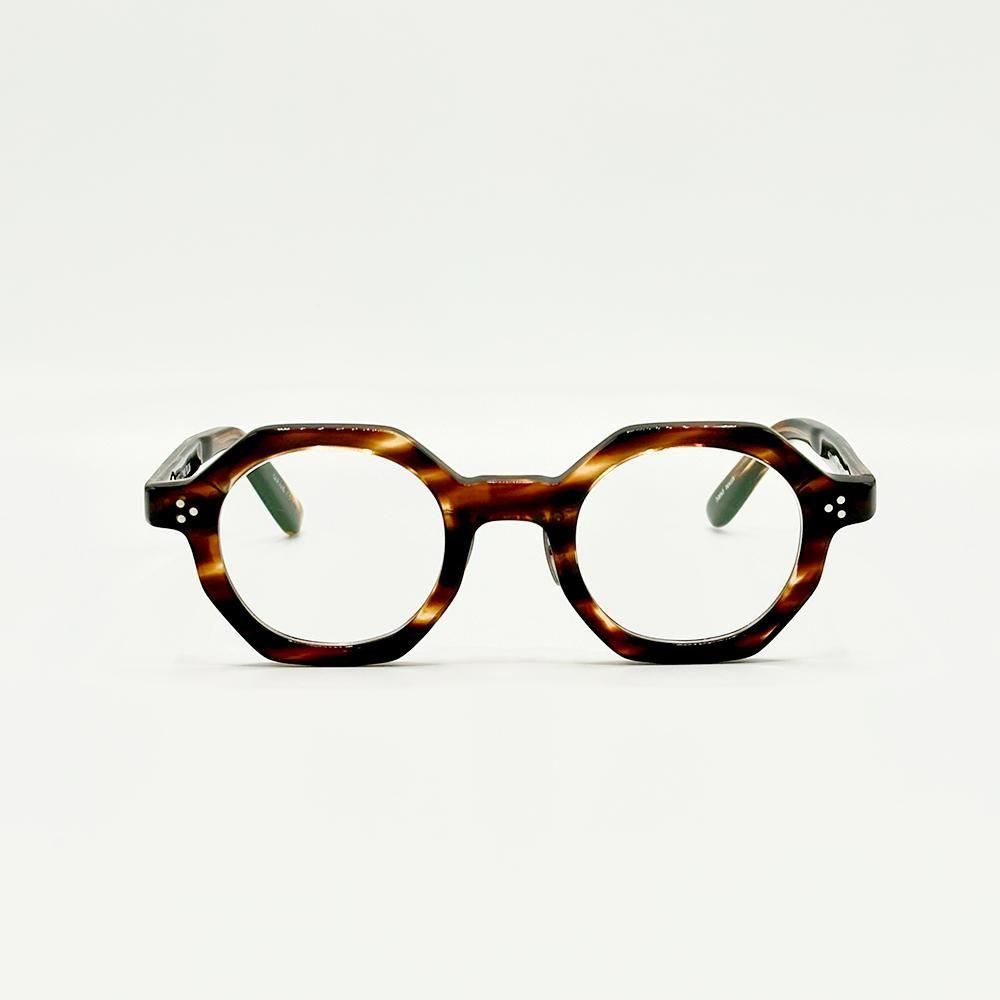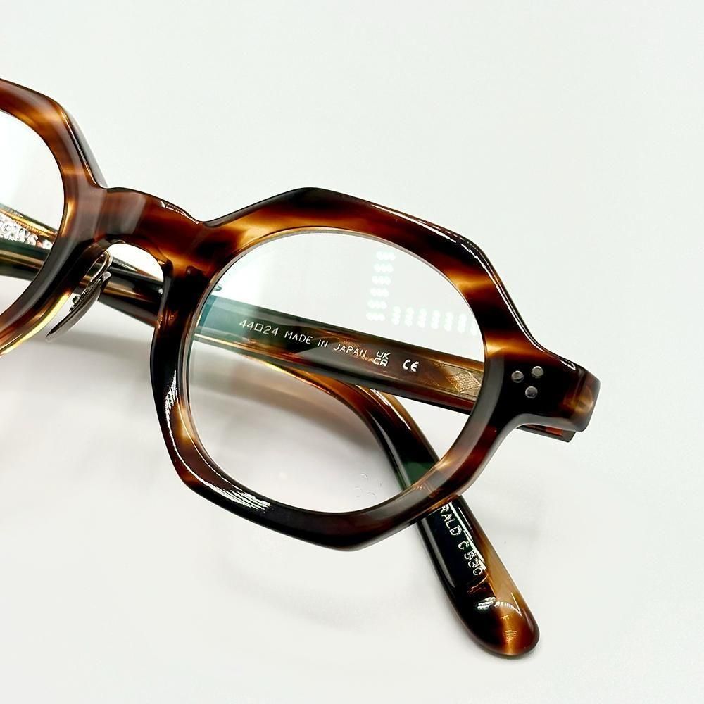 ぽってりとした厚みのあるオクタゴンシェイプのリムにテレビジョンカットを施し、よりアセテートのボリューム感とツヤ感を引き出しているGERALD。