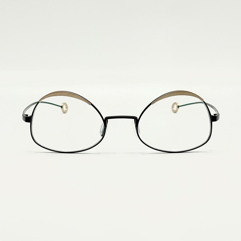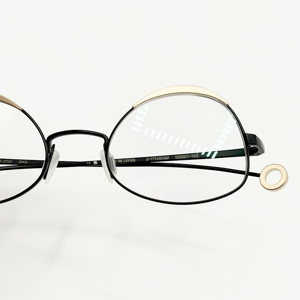 コロンとしたおにぎりのような三角形のレンズシェイプに、アクセントとなるカラーバーが取り付けられた25E。にこやかな目元を作ってくれる。