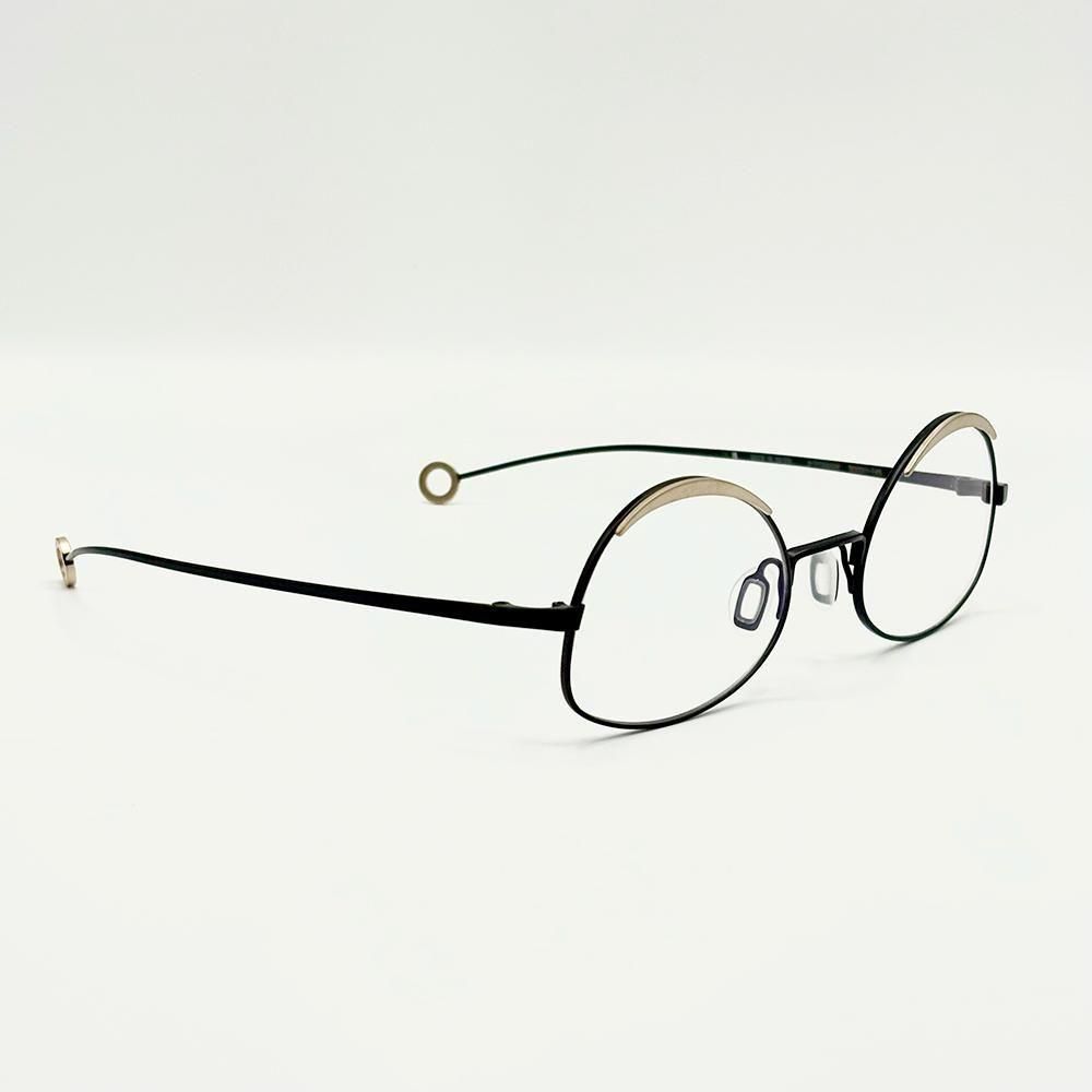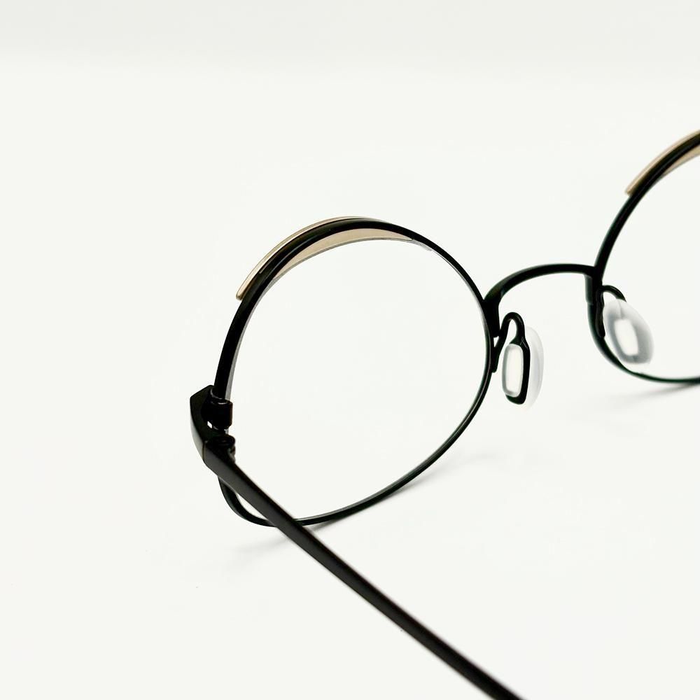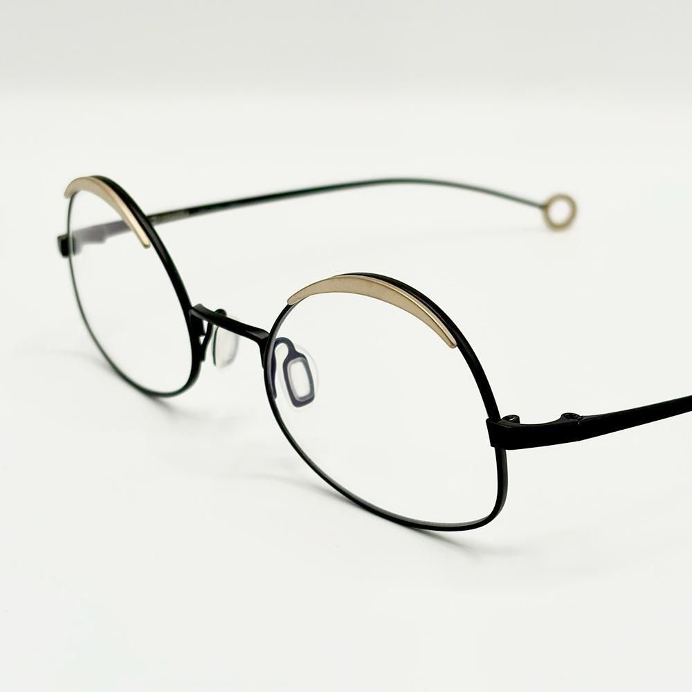 ごく細いチタンで構成され、やりすぎ感なく、意外にもさりげなくかけられる。