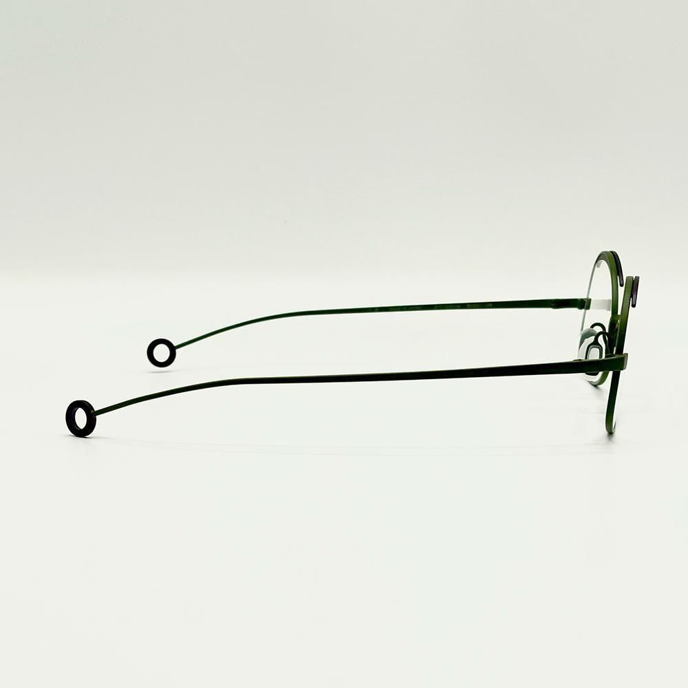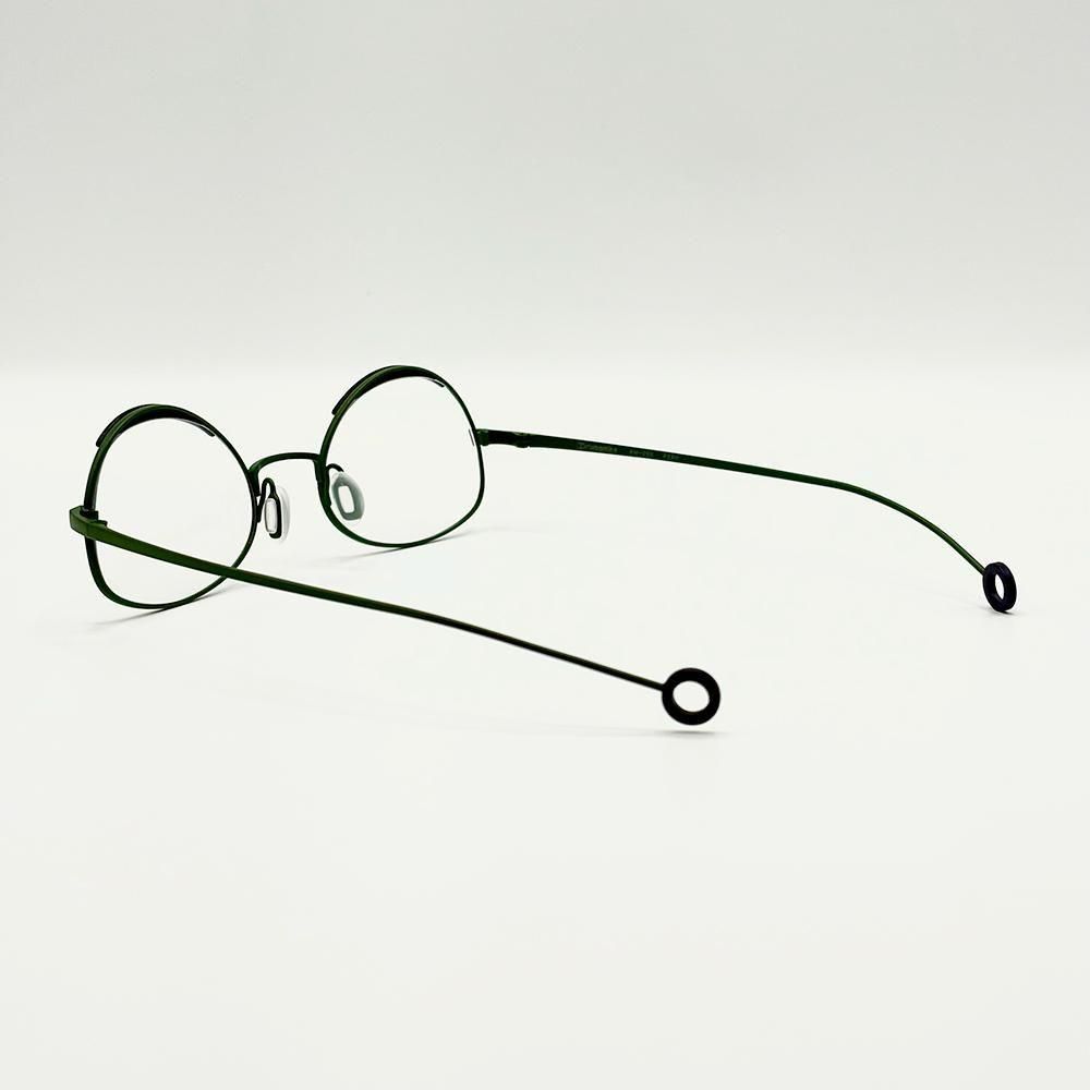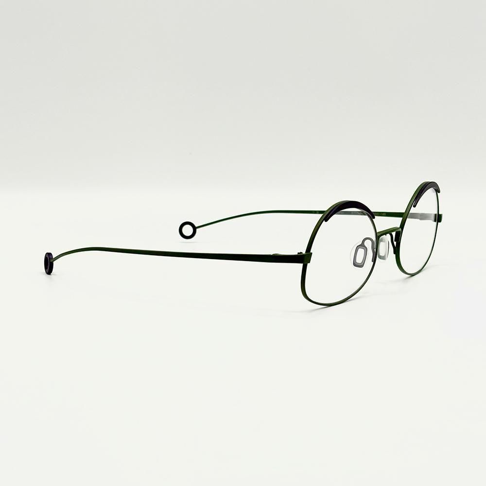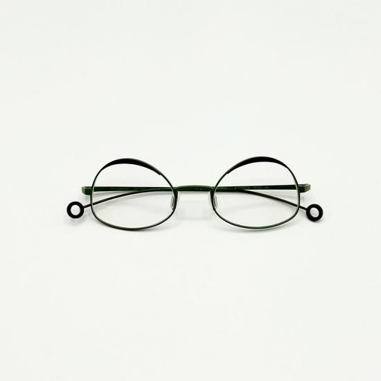 コロンとしたおにぎりのような三角形のレンズシェイプに、アクセントとなるカラーバーが取り付けられた25E。にこやかな目元を作ってくれる。
