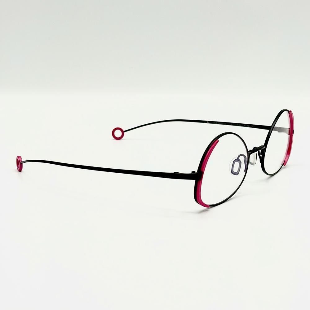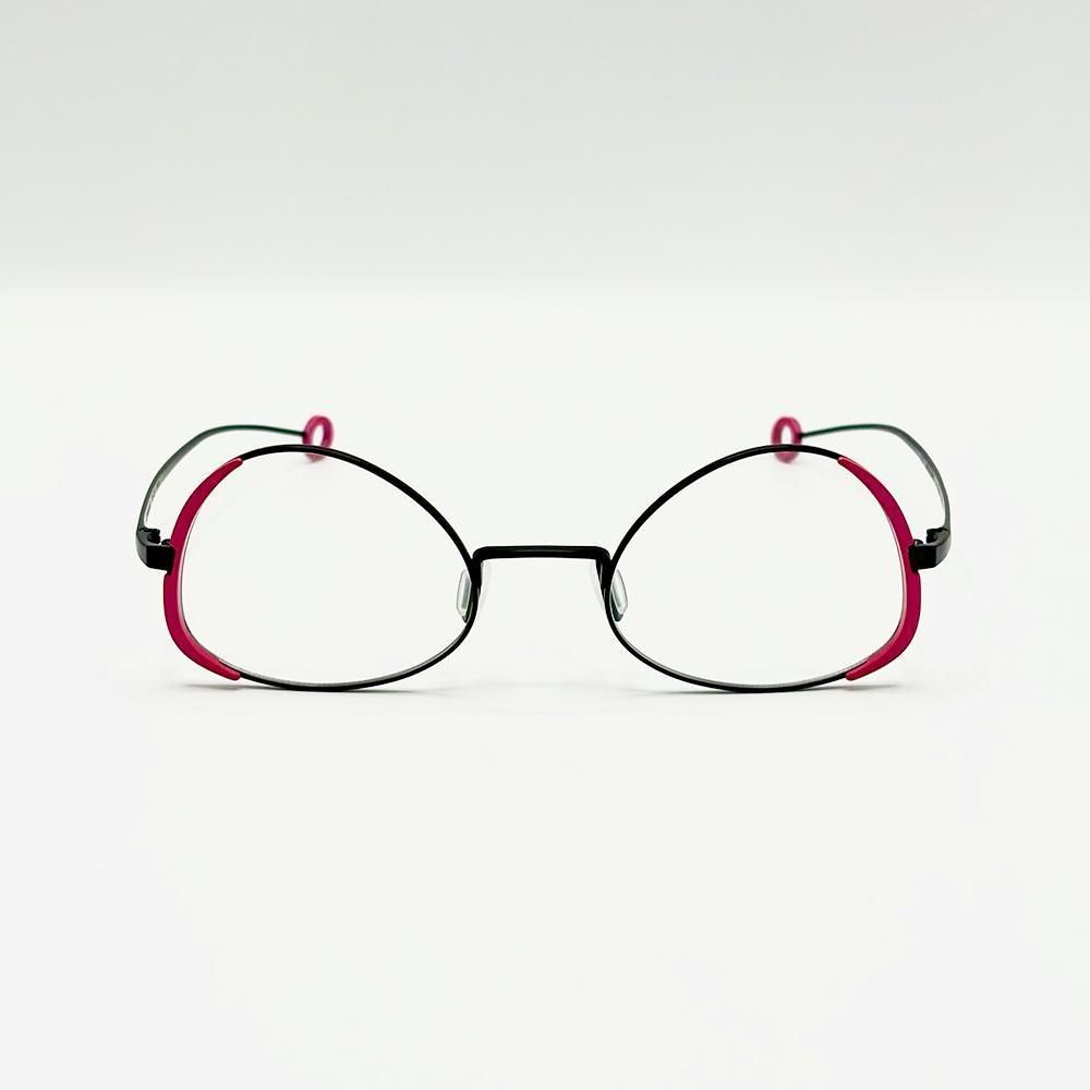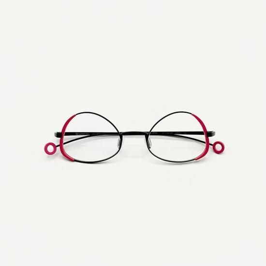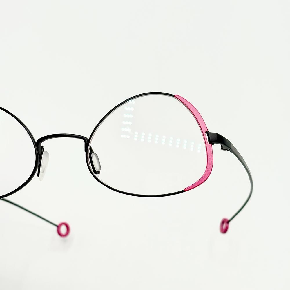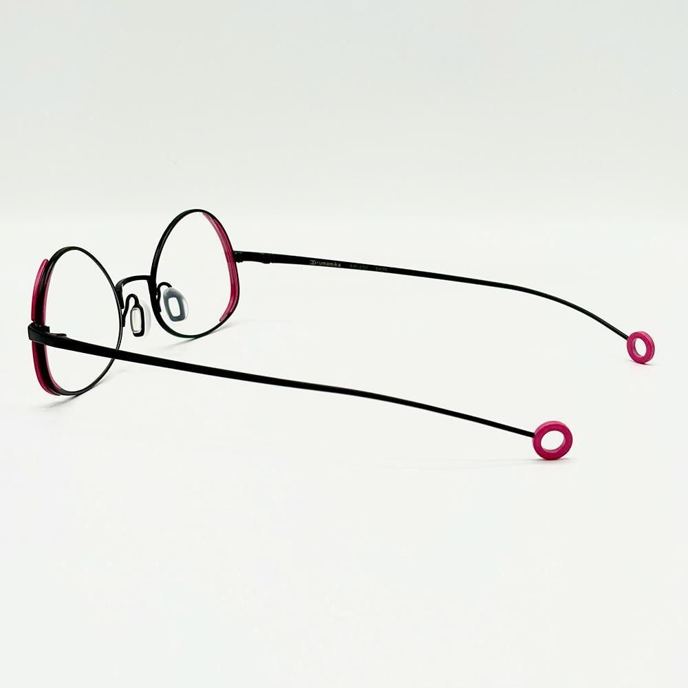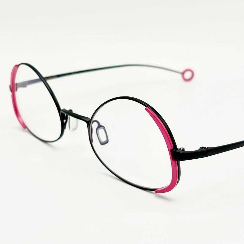 コロンとしたおにぎりのような三角形のレンズシェイプに、アクセントとなるカラーバーが取り付けられた25F。タレ目っぽく、優しい目元を作ってくれる。
