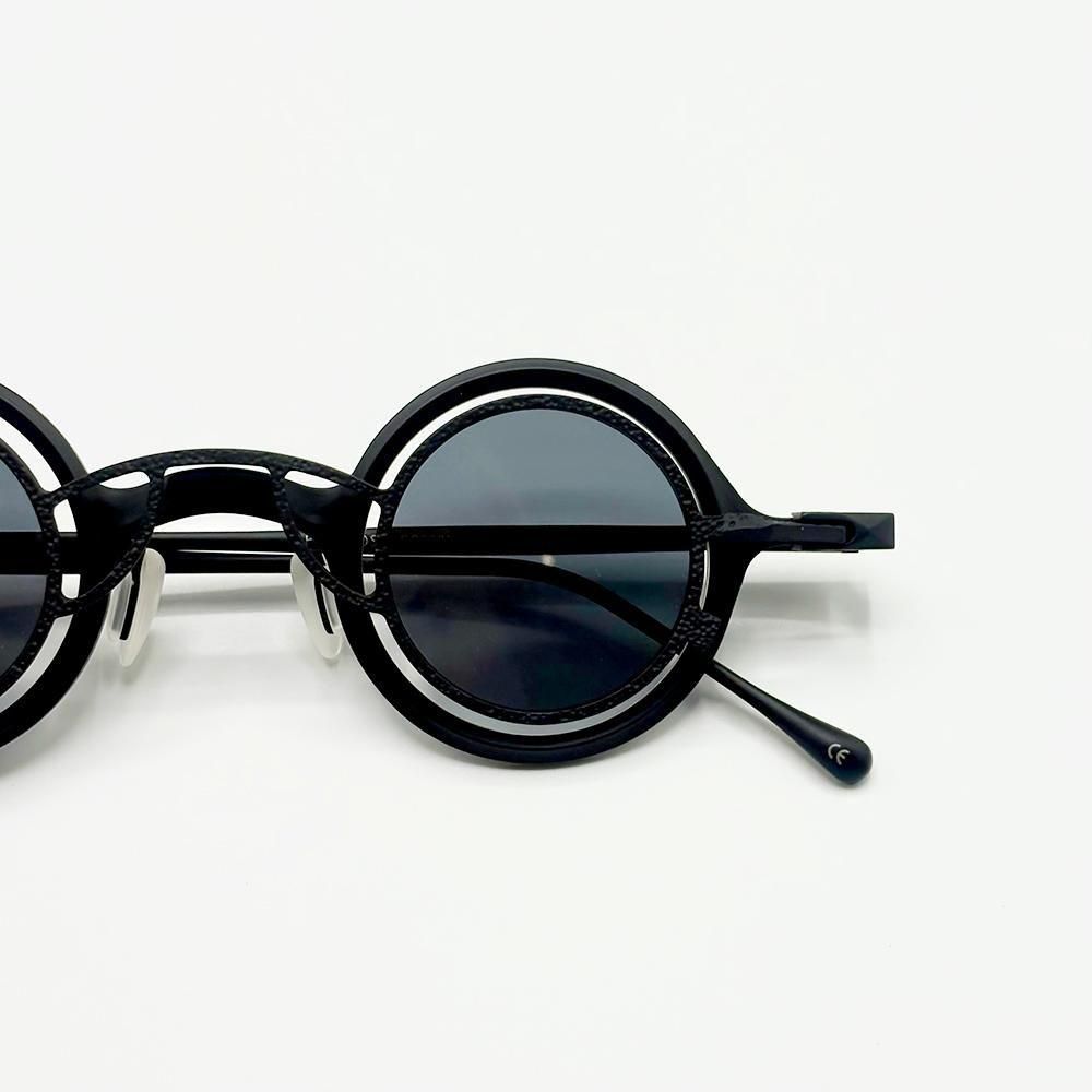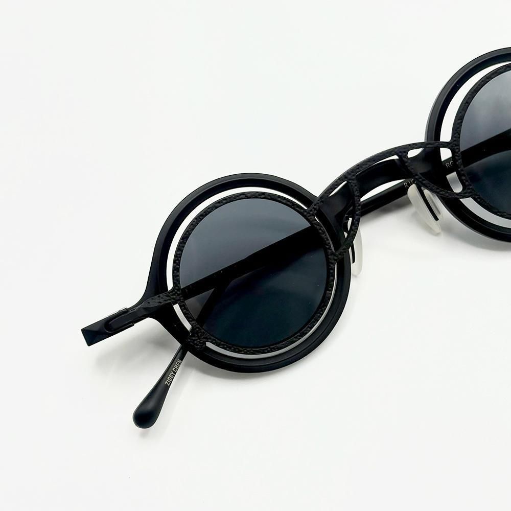 マグネットで小気味良く着脱可能なクリップオンスタイルのサングラス付き。装着すれば、眩しさをカットしながら世界観をより濃くプラスできる。