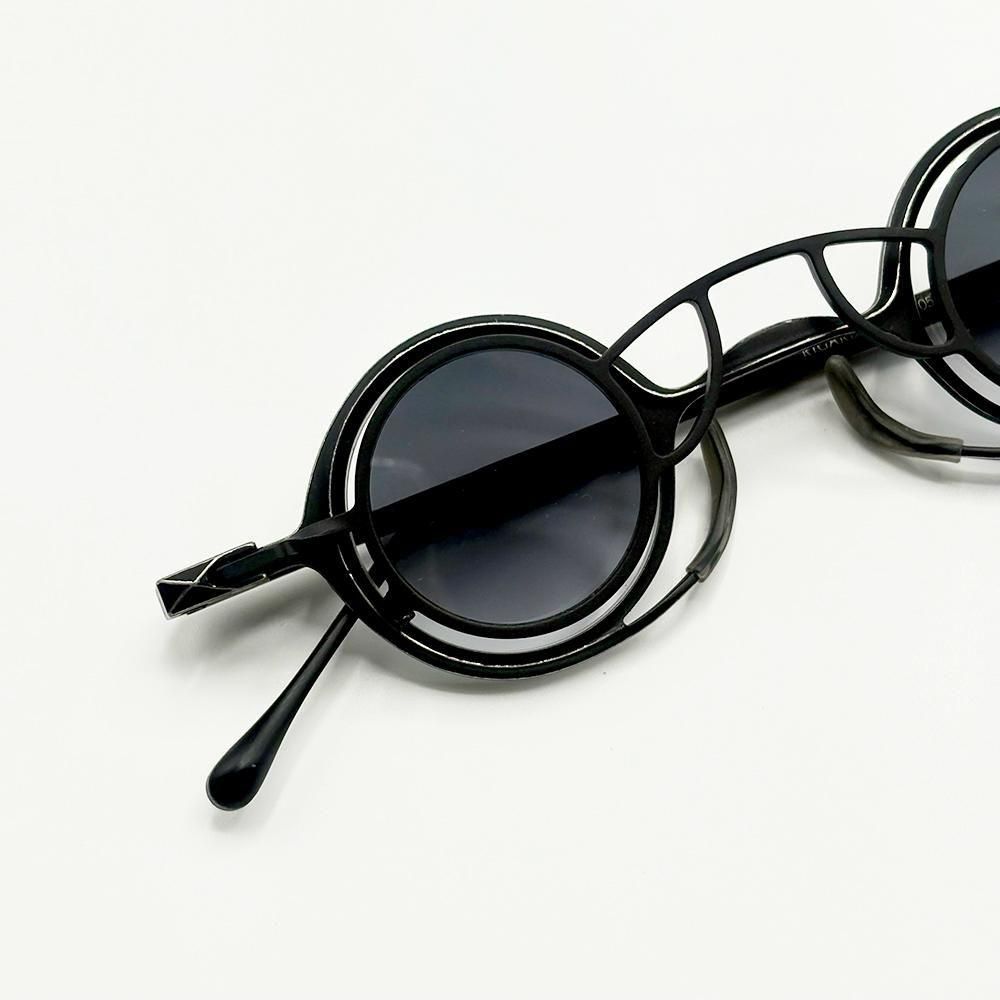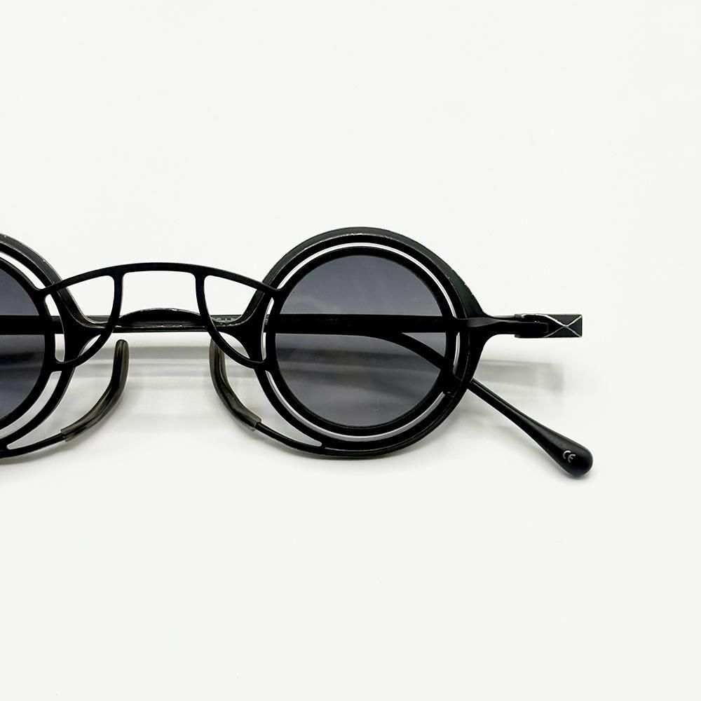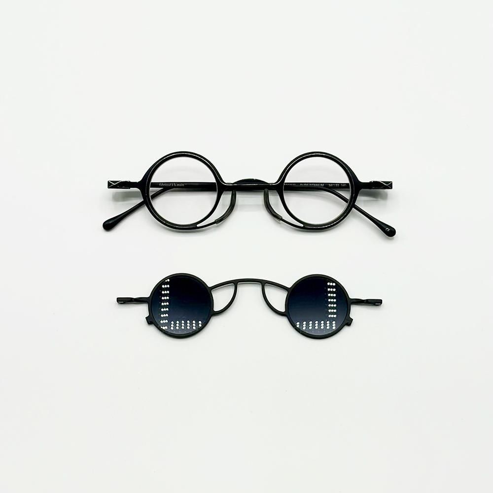 マグネットで小気味良く着脱可能なクリップオンスタイルのサングラス付き。装着すれば、眩しさをカットしながら世界観をより濃くプラスできる。