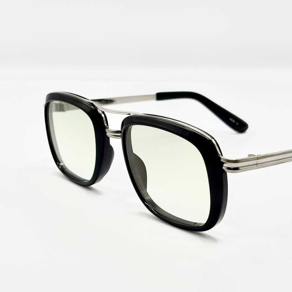 70'sの日本の映画やドラマで見たことあるような、良い意味の野暮ったさを感じさせるダブルブリッジ。ボリューム感のあるアセテートリム、カーヴィングを加え豊かな表情と存在感を加えてくれる幅広のチタンパーツ。探すとなかなか出会えないこのナードさと格好良さのグッドバランス。